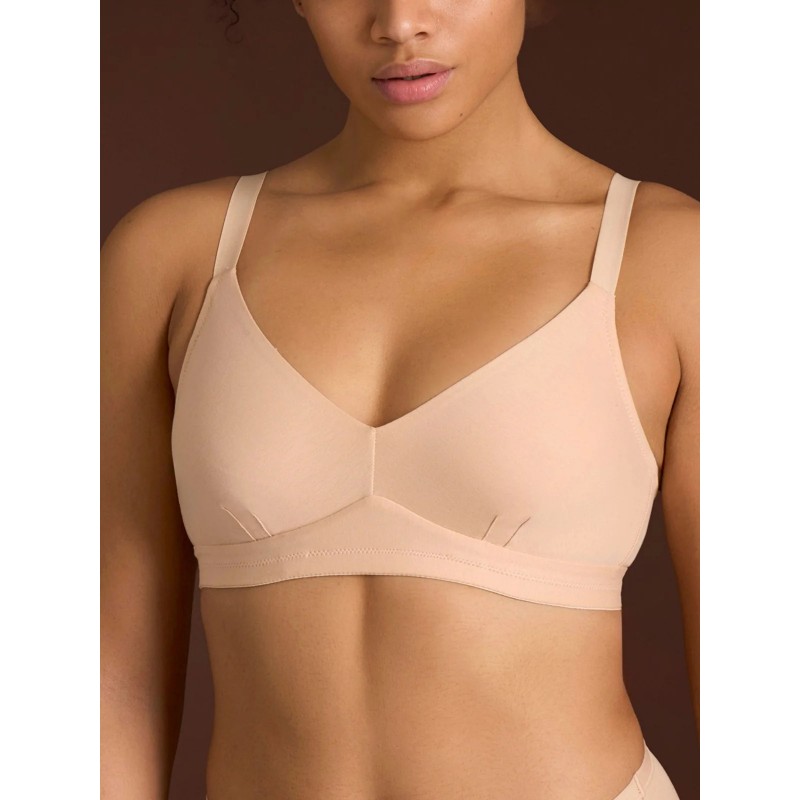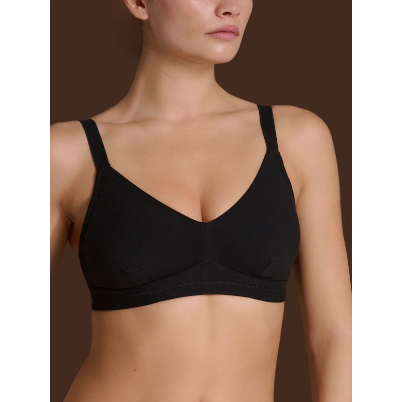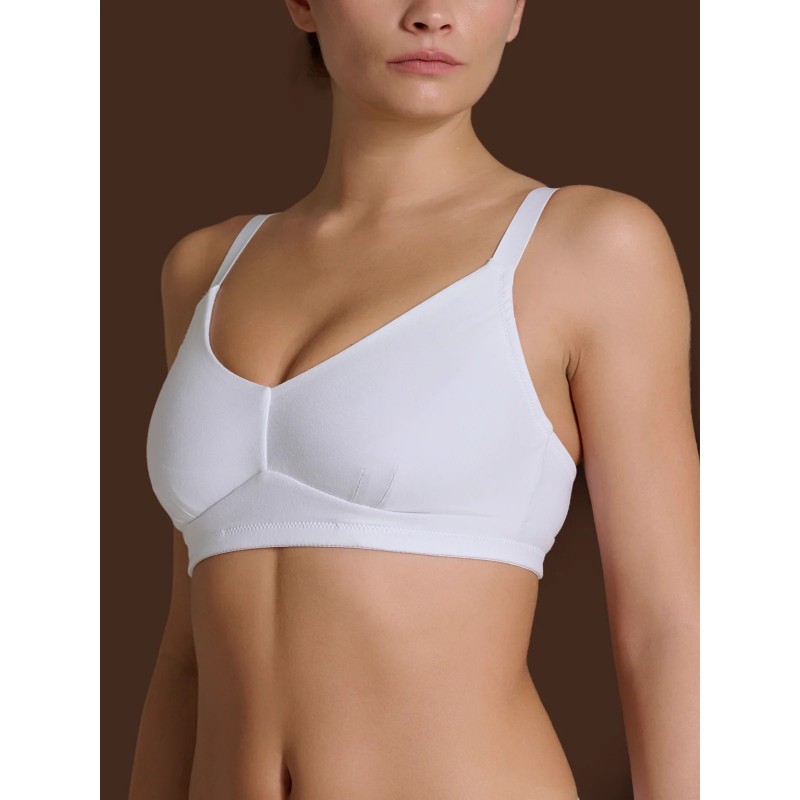 Reggiseno a pieno supporto e senza ferretto in delicato cotone elasticizzato extra fine.